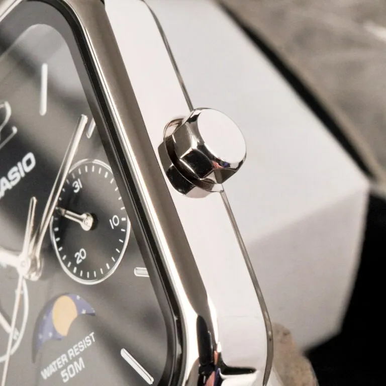 Phối màu đen – bạc (Black & Silver) luôn là lựa chọn hàng đầu của những quý ông thành đạt. Trên chiếc Đồng Hồ Casio 44.5 × 34 mm Nam MTP-M305D-1AVDF, sắc đen sâu thẳm của mặt số đóng vai trò làm nền hoàn hảo, giúp các chi tiết mạ bạc trở nên nổi bật và sắc nét hơn bao giờ hết.