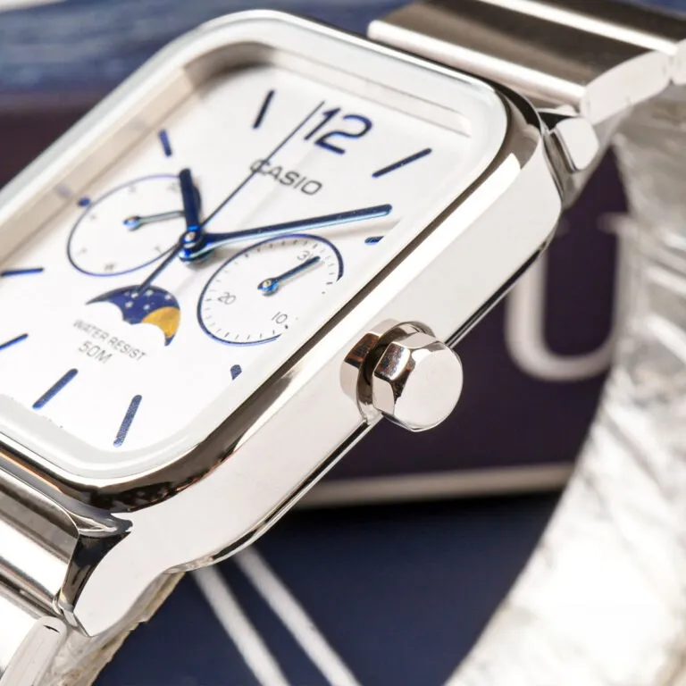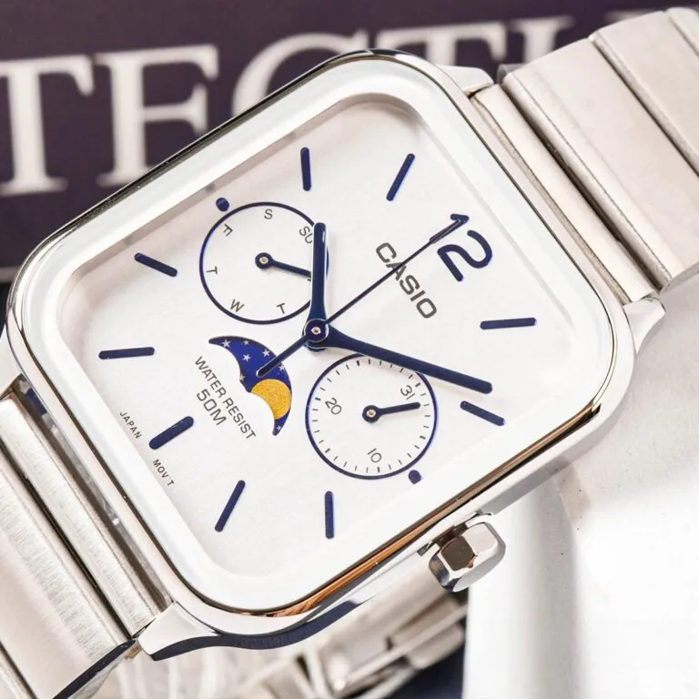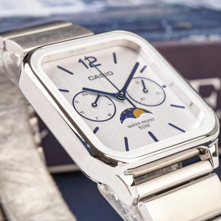 Trong thế giới đồng hồ nam đương đại, sự trở lại của những thiết kế mặt vuông đã tạo nên một làn sóng mạnh mẽ. Tuy nhiên, Đồng Hồ Casio 44.5 x 34 mm Nam MTP-M305D-7AVDF không chỉ đơn thuần là đuổi theo xu hướng. Đây là một tác phẩm nghệ thuật thực thụ từ nhà Casio khi lồng ghép tính năng lịch tuần trăng (Moon Phase) – vốn chỉ xuất hiện trên các dòng xa xỉ – vào một mức giá cực kỳ dễ tiếp cận.