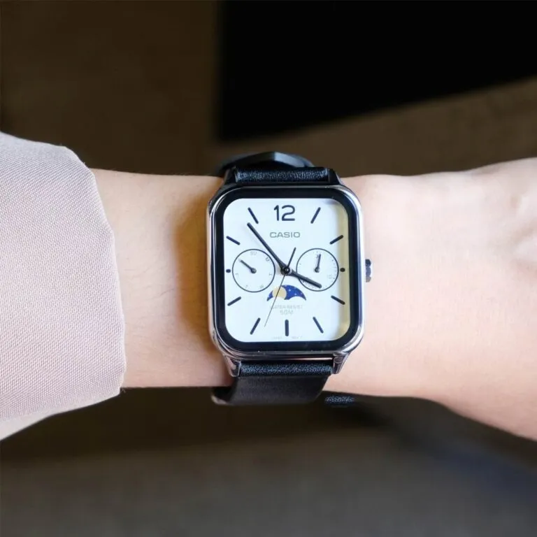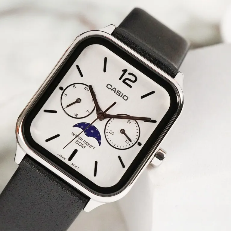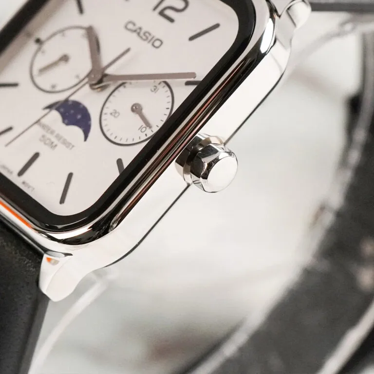 Nếu bạn đã quá quen thuộc với những mẫu đồng hồ Casio truyền thống, Đồng Hồ Casio 44.5 x 34 mm Nam MTP-M305L-7AVDF sẽ khiến bạn phải thay đổi hoàn toàn suy nghĩ. Đây là sự kết hợp hoàn mỹ giữa hơi thở hiện đại của dòng mặt vuông và nét cổ điển, lãng mạn của tính năng Moon Phase (Lịch trăng) – một tính năng vốn thường chỉ xuất hiện trên các dòng đồng hồ xa xỉ.