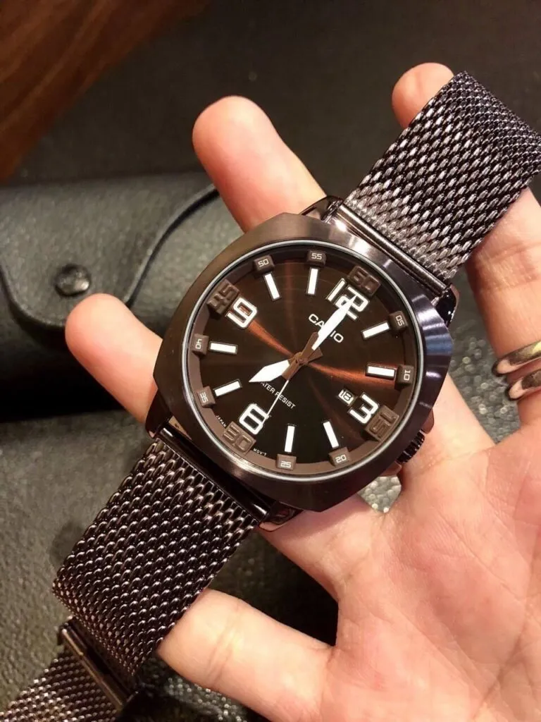 Điểm khác biệt đắt giá nhất trên Đồng hồ Casio 44mm Nam MTP-1350CD-8A1DF chính là bộ vỏ vuông nhưng các góc lại được bo tròn mềm mại. Đây là kiểu dáng thường thấy trên các dòng đồng hồ xa xỉ, giúp sản phẩm trông to bản, nam tính mà vẫn giữ được nét thanh lịch.