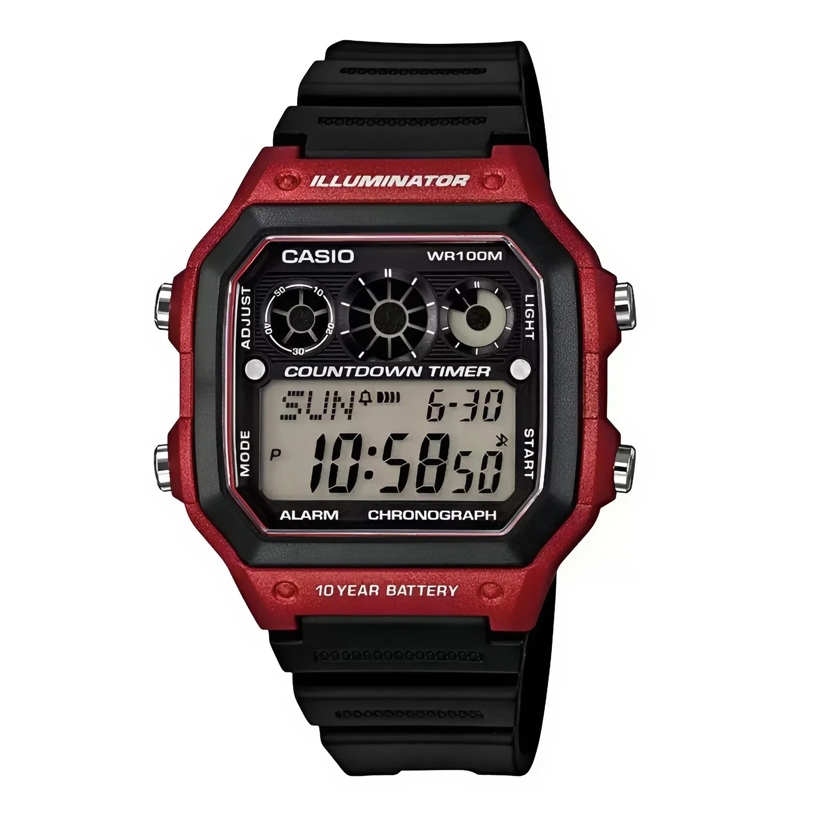 Nếu bạn đang tìm kiếm một chiếc đồng hồ không chỉ để xem giờ mà còn là một công cụ hỗ trợ tập luyện chuyên nghiệp với vẻ ngoài cực ngầu, thì đừng bỏ qua bài viết này. Hôm nay, chúng ta sẽ cùng mổ xẻ "quái vật" phân khúc giá rẻ: Đồng Hồ Casio 45 × 42.1 mm Nam AE-1300WH-4AVDF. Với phối màu đỏ đen rực cháy, đây chính là món phụ kiện sinh ra để dành cho những người đàn ông năng động và yêu thích tốc độ.