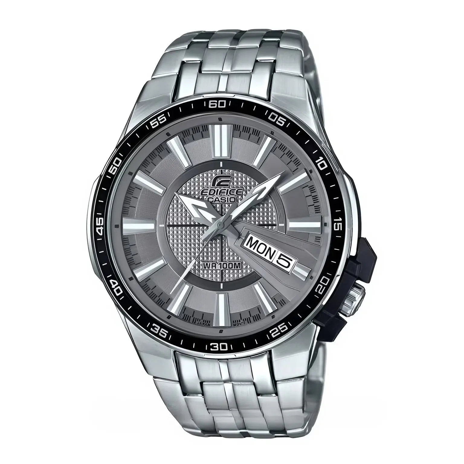 Phần bezel (vòng băm) được thiết kế với các đường nét gờ nổi mạnh mẽ, gợi liên tưởng đến bộ phận cơ khí của những chiếc xe đua công thức 1. Đây là chi tiết đặc trưng giúp dòng Edifice luôn giữ được nét thể thao dù đang khoác lên mình "bộ cánh" công sở lịch thiệp.