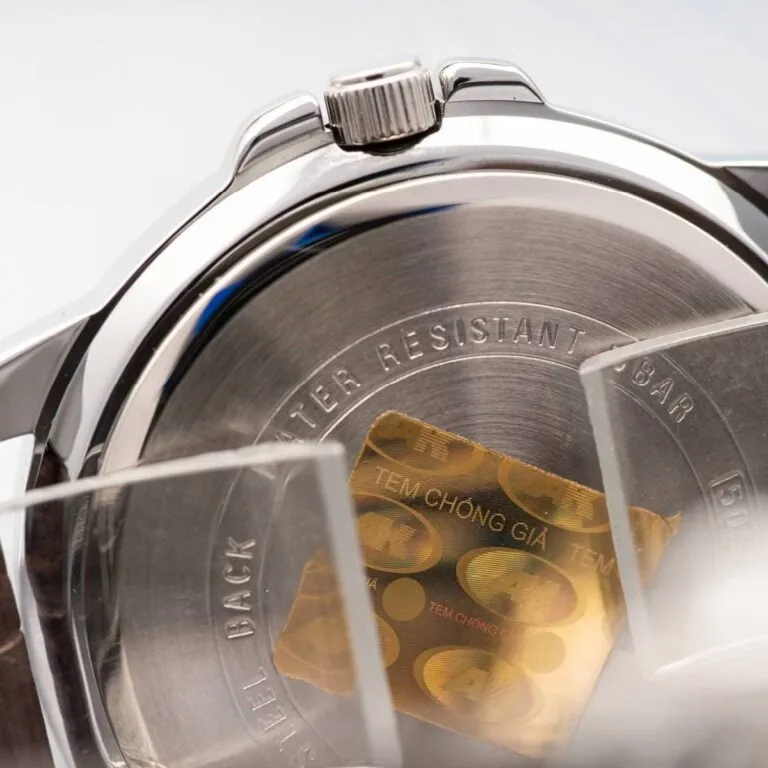 Khả năng chống nước 50m: Với chỉ số 5 ATM, bạn hoàn toàn có thể yên tâm sử dụng đồng hồ khi rửa tay, đi mưa lớn hoặc tắm vòi sen. Đây là mức kháng nước lý tưởng cho một chiếc đồng hồ thời trang kết hợp công việc hàng ngày.