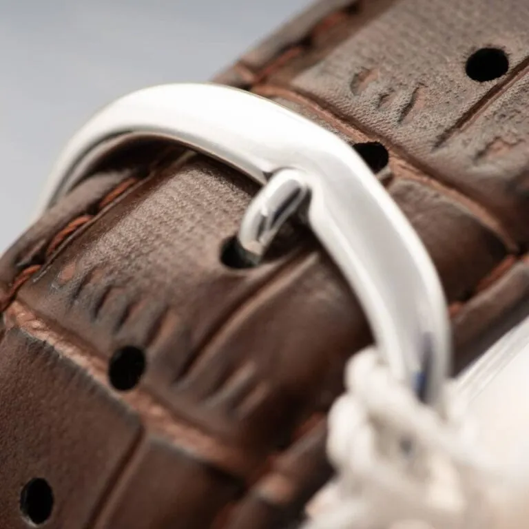 Màu sắc sang trọng: Tông màu nâu trầm của dây khi kết hợp cùng vỏ thép trắng bạc tạo nên một tổng thể hài hòa, rất dễ phối cùng các trang phục từ sơ mi công sở đến những bộ Vest sang trọng trong các buổi tiệc.