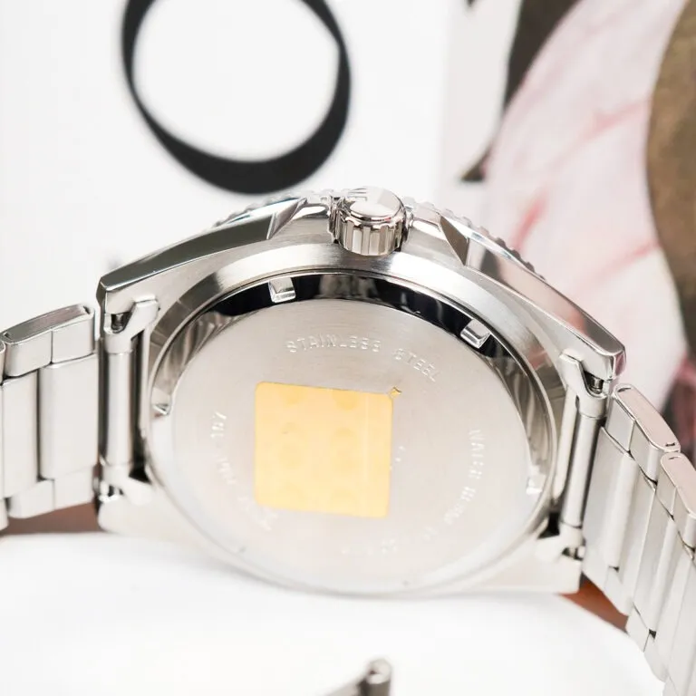 Cấu trúc vỏ thép chắc chắn: Phần vỏ máy được chế tác từ thép không gỉ cao cấp, đánh bóng tỉ mỉ ở các cạnh tạo nên sự sang trọng cần thiết cho một chiếc đồng hồ thể thao.