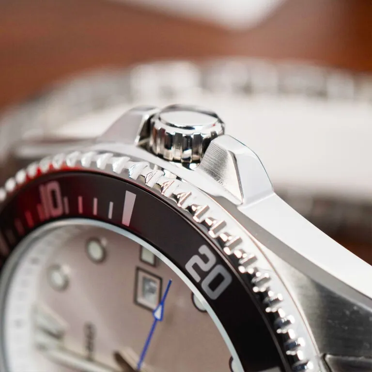 Dù sở hữu thông số khá lớn, nhưng nhờ thiết kế tai (lugs) thông minh và độ dày vỏ hợp lý, đồng hồ vẫn ôm sát cổ tay, không gây cảm giác cồng kềnh. Trọng lượng của thép không gỉ mang lại cảm giác đầm tay, chắc chắn – một đặc điểm mà bất kỳ quý ông nào cũng tìm kiếm ở một chiếc đồng hồ chất lượng.
