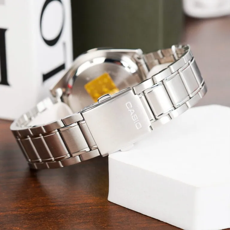 Để đạt được con số ấn tượng này, Casio đã trang bị cho MDV-107D-7AVDF núm vặn dạng vít (Screw-lock crown) và nắp lưng xoay chắc chắn. Cơ chế này đảm bảo sự kín khít tuyệt đối, bảo vệ bộ máy Quartz bên trong khỏi áp suất nước và độ ẩm, giúp đồng hồ luôn hoạt động bền bỉ qua hàng thập kỷ.