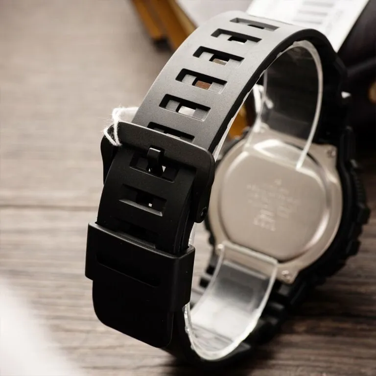 Dây đeo thoát mồ hôi: Dây nhựa đen không chỉ bền bỉ trước tác động của môi trường mà còn rất dễ vệ sinh. Thiết kế dây có nhiều nấc chỉnh, phù hợp với mọi kích cỡ cổ tay nam giới.