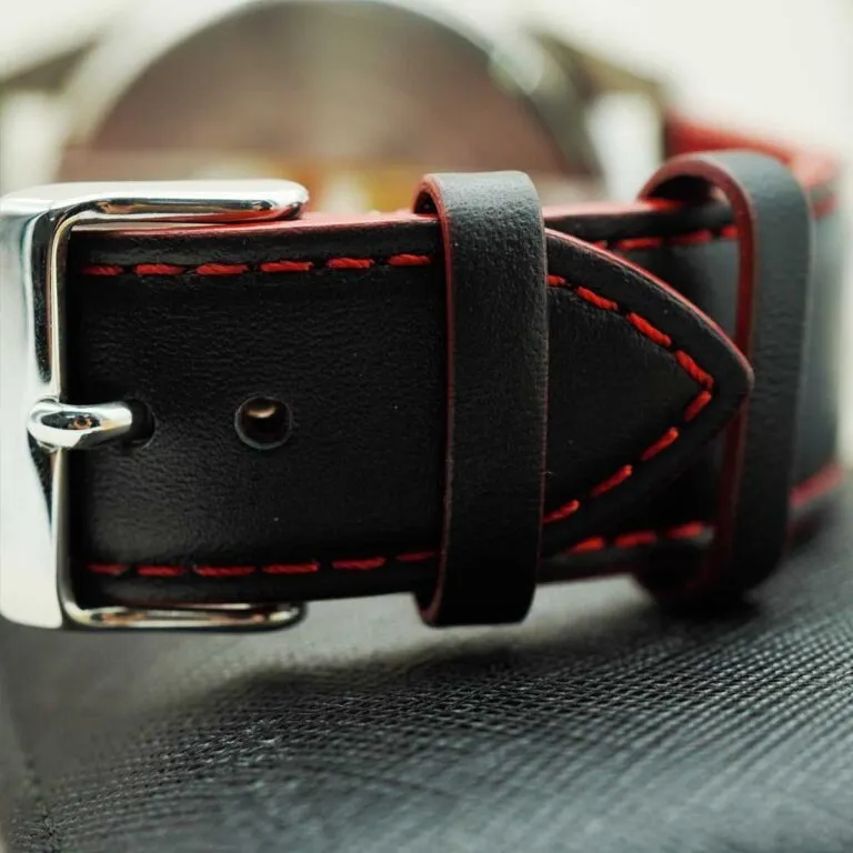 Để xứng tầm với mặt số hầm hố, Casio đã trang bị cho đồng hồ Casio 47.5mm nam MTP-SW320L-1AVDF bộ dây da thật màu đen lót đỏ. Đường chỉ khâu màu đỏ nổi bật dọc theo thân dây không chỉ tăng độ bền mà còn tạo điểm nhấn thể thao đồng điệu với các chi tiết trên mặt số. Chất liệu da cao cấp mang lại sự mềm mại, thoải mái, giúp giảm bớt cảm giác nặng nề của bộ vỏ thép cỡ lớn.