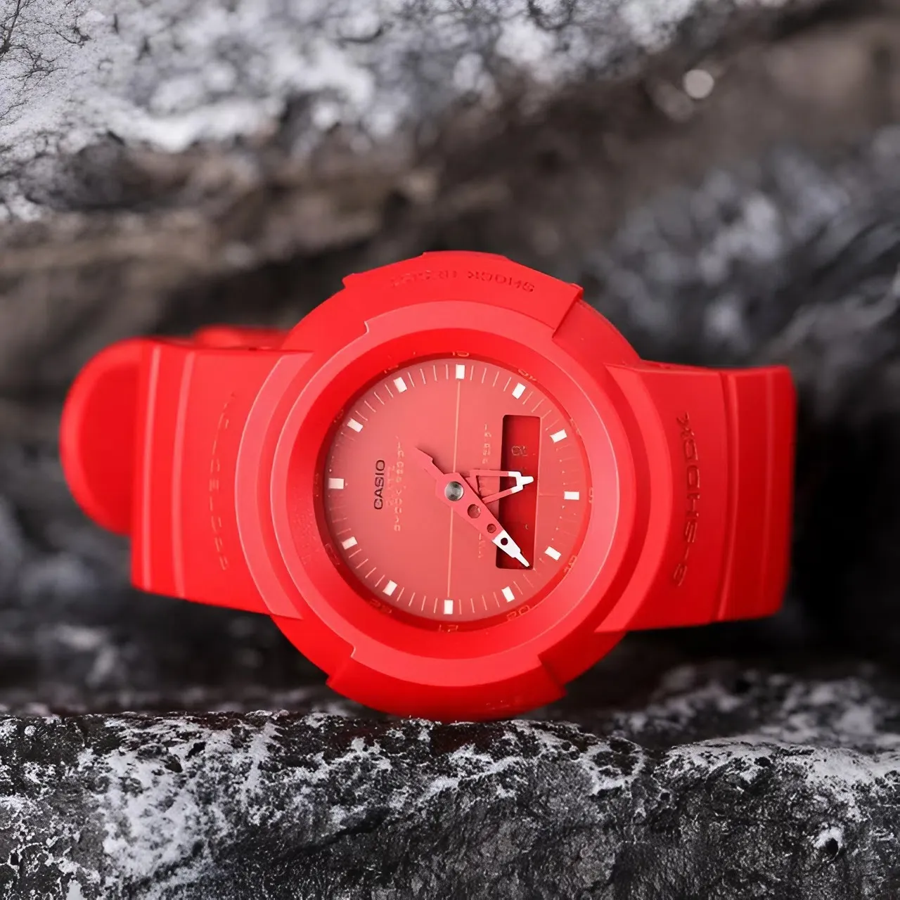 Ít ai biết rằng, dòng AW-500 chính là dòng sản phẩm đặt nền móng cho việc kết hợp giữa kim analog và màn hình kỹ thuật số của G-Shock vào năm 1989. Với phiên bản AW-500BB-4EDR, Casio không chỉ đơn thuần là tái bản, mà họ đã thổi vào đó một luồng sinh khí mới đầy táo bạo. Toàn bộ vỏ và dây đeo được bao phủ bởi tông màu đỏ lì (matte red), tạo nên một ngoại diện đồng nhất, thu hút mọi ánh nhìn ngay từ lần đầu tiên chạm mặt.