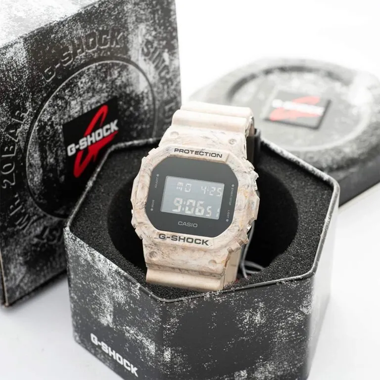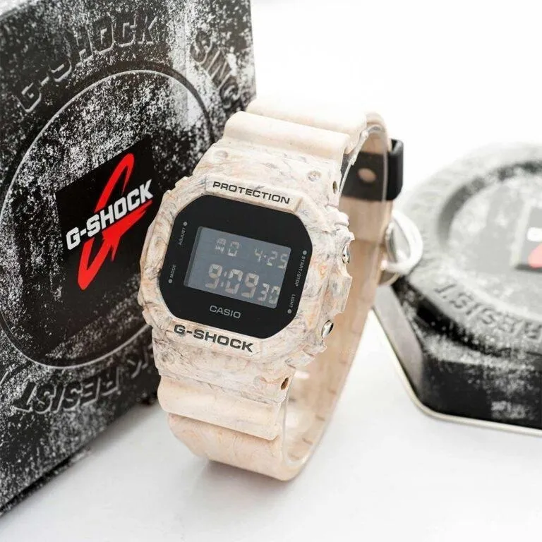 Màu cát vàng sa mạc quyện cùng những dải nâu trầm của đá núi tạo nên những đường vân ngẫu nhiên. Điều này có nghĩa là mỗi chiếc Đồng Hồ Casio 48.9 x 42.8 mm Nam DW-5600WM-5DR xuất xưởng đều sở hữu một "nhận diện" riêng biệt, không có hai chiếc nào hoàn toàn giống hệt nhau về đường nét vân màu. Đây chính là yếu tố biến nó trở thành một món đồ sưu tầm giá trị đối với những ai yêu thích sự độc bản.
