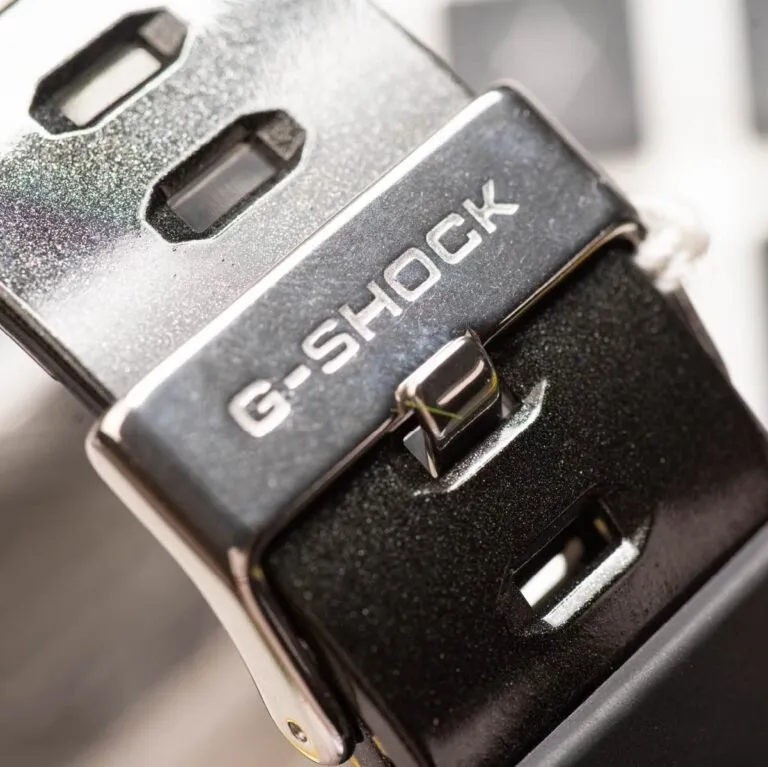 Thiết kế gồ ghề: Lớp vỏ resin dày dặn được đúc khối với các đường gân nổi mạnh mẽ, không chỉ bảo vệ bộ máy bên trong mà còn tạo nên một phom dáng cực kỳ ấn tượng trên cổ tay.