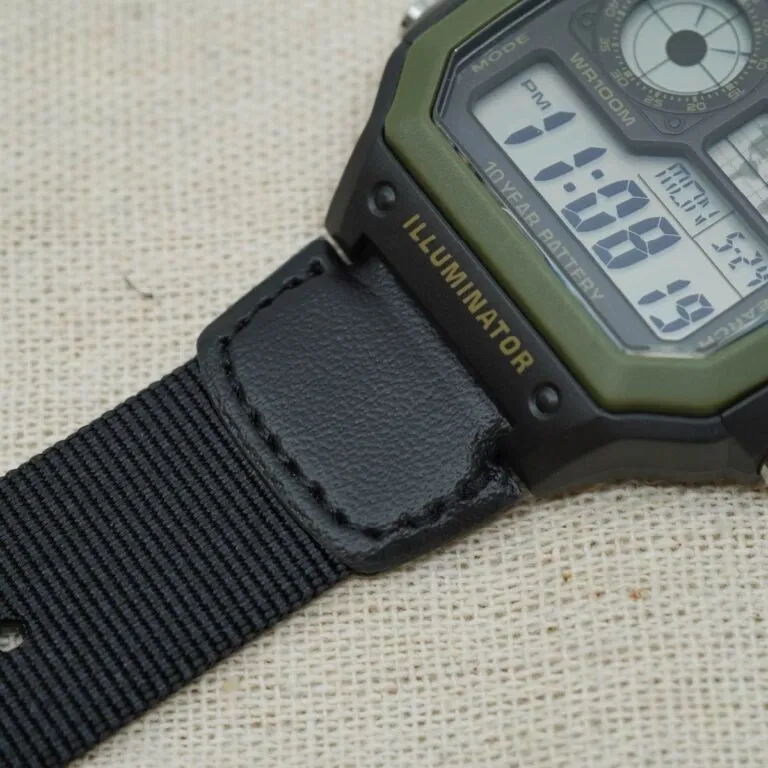 Dây vải dù (Nylon) siêu bền: Thay vì dây nhựa hay thép, phiên bản này sử dụng dây dù cao cấp được bọc da ở phần lỗ khóa. Chất liệu này không chỉ bền bỉ, chống chịu tốt với môi trường khắc nghiệt mà còn mang lại cảm giác đeo nhẹ tênh và cực kỳ thoáng khí.