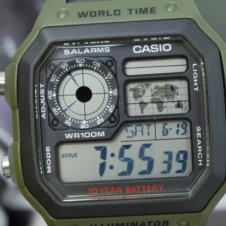 Tổng kết lại, Đồng Hồ Casio Nam AE-1200WHB-3BVDF là một tác phẩm nghệ thuật của sự bền bỉ và phong cách. Với tông màu xanh quân đội cuốn hút, bộ dây vải dù cá tính và những tính năng đỉnh cao, đây chắc chắn là món phụ kiện nâng tầm đẳng cấp cho phái mạnh.