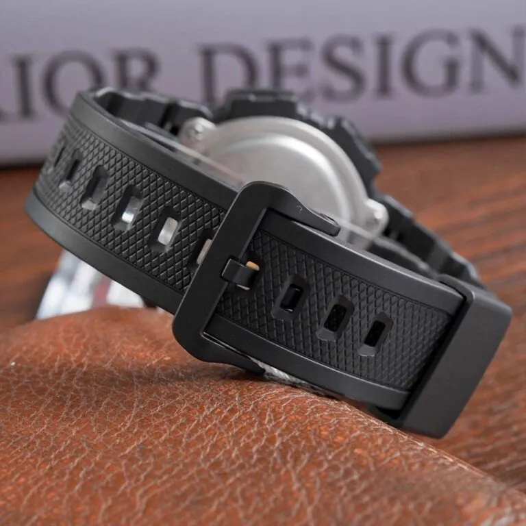 Dây đeo nhựa cao cấp với các lỗ thoát khí thông minh giúp cổ tay luôn khô thoáng, tránh tình trạng kích ứng da khi vận động mạnh.