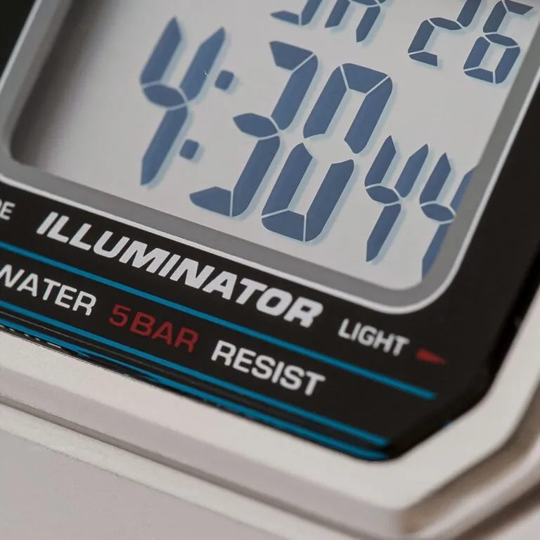 Màn hình LCD của máy được làm lớn hơn, các con số hiển thị to và rõ nét, giúp bạn dễ dàng theo dõi thời gian chỉ với một cái liếc mắt. Bao quanh mặt số là lớp viền nhựa cứng cáp mạ bạc đồng nhất với màu dây, tạo nên một tổng thể liền mạch và sang trọng.