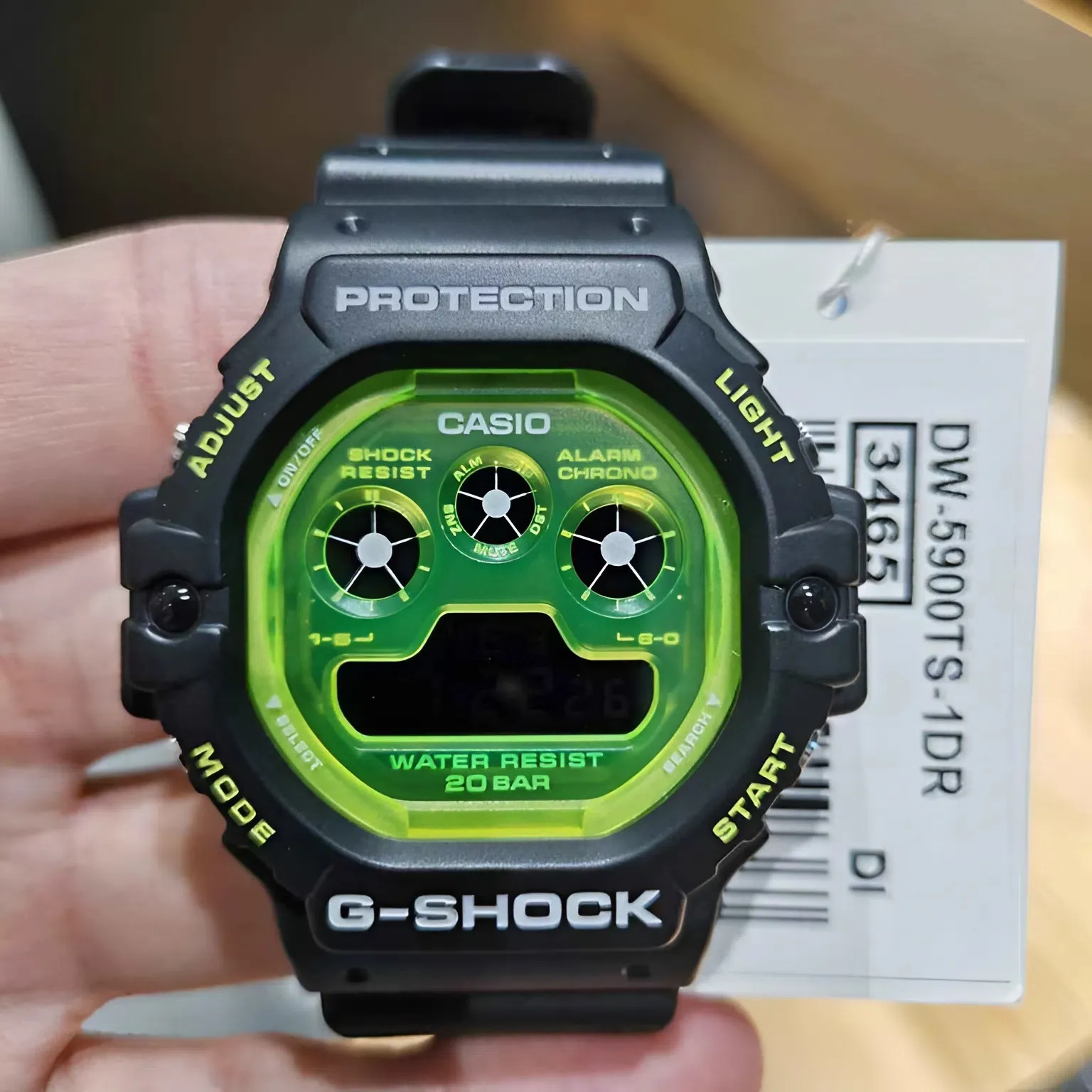 Sự lựa chọn của sự khác biệt: Trong khi mọi người chọn các dòng vuông (5600) hay bát giác (2100) phổ biến, việc đeo một chiếc 5900 "ba mắt" mặt xanh dạ quang sẽ khẳng định gu thẩm mỹ độc đáo và có chiều sâu của bạn.