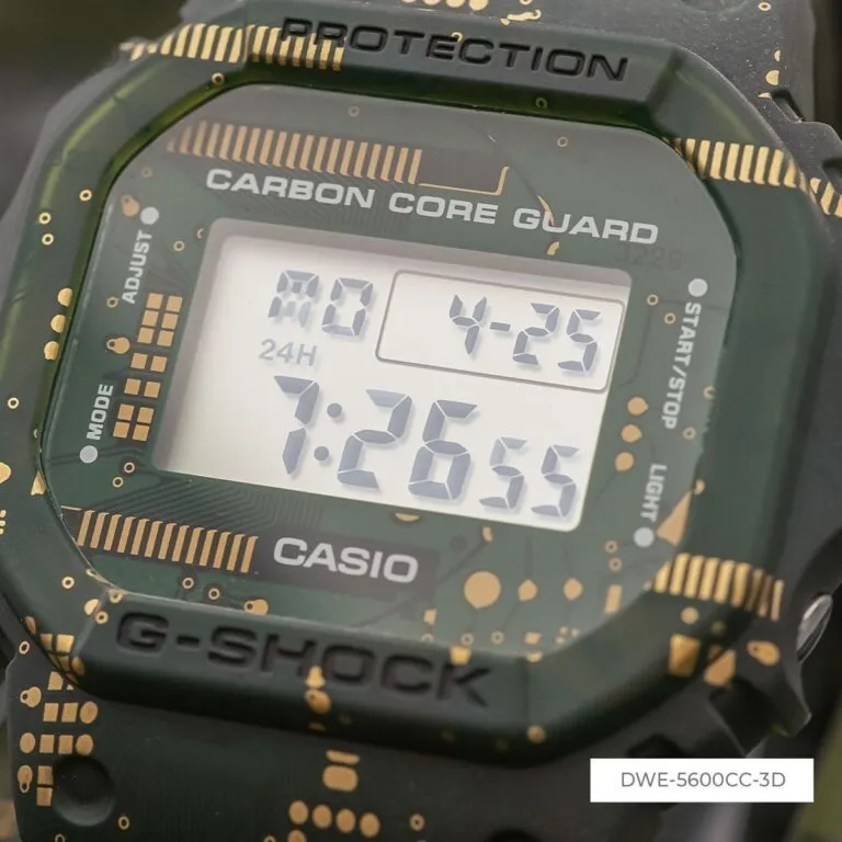 Trong lịch sử hơn 40 năm của G-Shock, dòng 5600 mặt vuông luôn là tượng đài bất diệt. Tuy nhiên, với mẫu Đồng Hồ Casio Nam DWE-5600CC-3DR, Casio đã thực hiện một bước đi táo bạo: đưa toàn bộ linh hồn của những bảng mạch điện tử lên bề mặt sản phẩm. Đây không chỉ là một chiếc đồng hồ, mà là một lời tri ân dành cho những giá trị cốt lõi làm nên đế chế Casio.