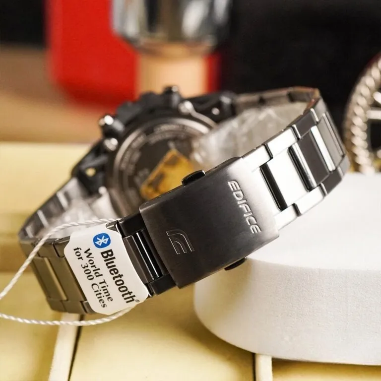 Smartphone Link (Bluetooth): Chỉ với một thao tác kết nối với điện thoại qua ứng dụng Casio Watches, đồng hồ sẽ tự động cập nhật giờ chính xác theo vị trí địa lý, quản lý giờ thế giới tại hơn 300 thành phố và hỗ trợ tìm điện thoại bằng âm thanh.