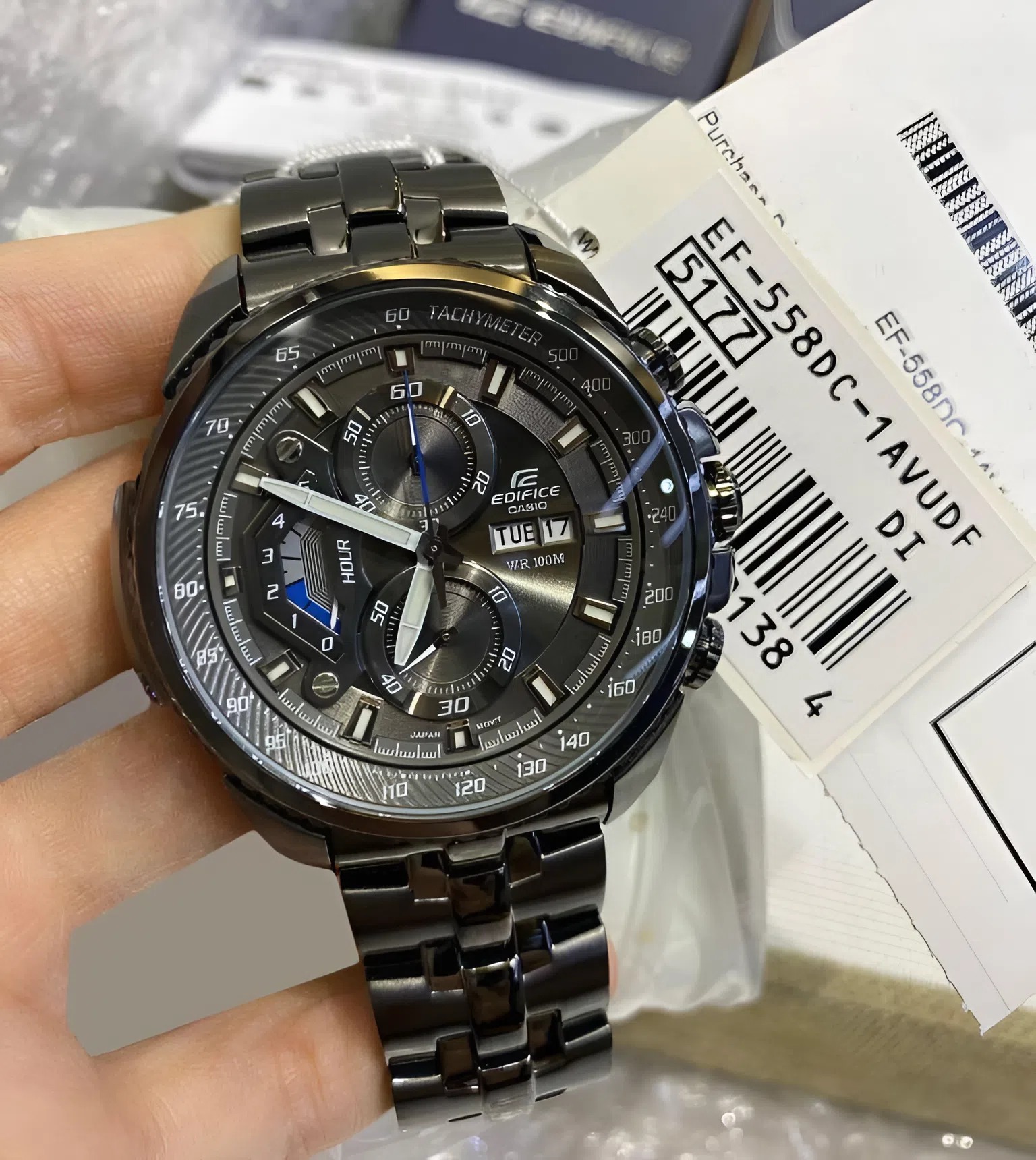 Đồng Hồ Casio Nam EF-558DC-1AVUDF không chỉ là một phụ kiện xem giờ, mà là tuyên ngôn về phong cách của người đàn ông hiện đại: mạnh mẽ, quyết đoán và không ngại thử thách. Nếu bạn đang tìm kiếm một "người đồng hành" bền bỉ với vẻ ngoài đầy quyền lực, thì chiếc Edifice mạ đen này chính là câu trả lời hoàn hảo nhất.