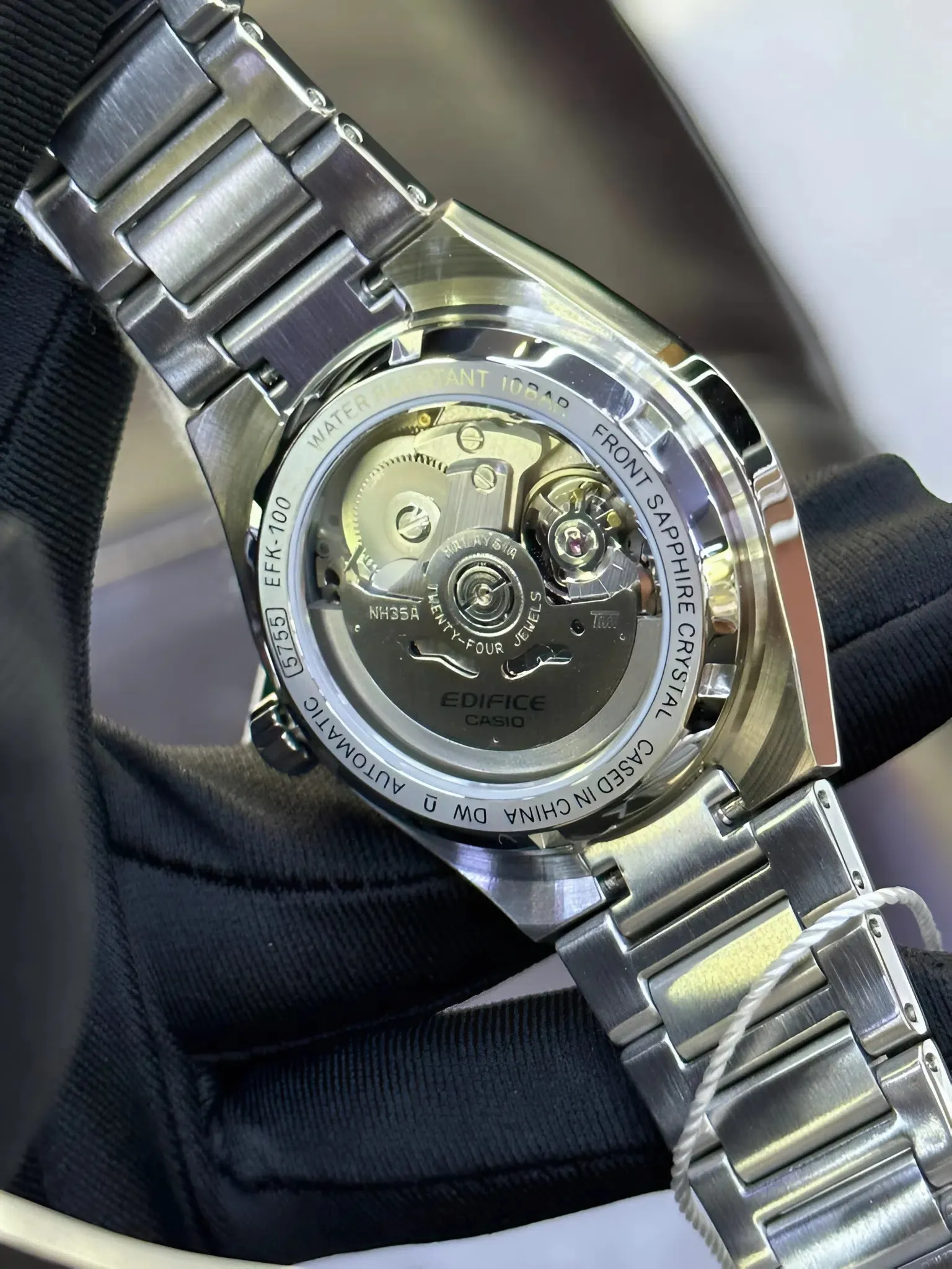 Điểm đáng giá nhất và cũng là niềm tự hào của mẫu Đồng hồ Casio Nam EFK-100CD-1ADR chính là lớp kính Sapphire nguyên khối. Trong phân khúc giá tầm trung, việc Casio ưu ái trang bị loại kính này là một bước đi cực kỳ tâm lý.