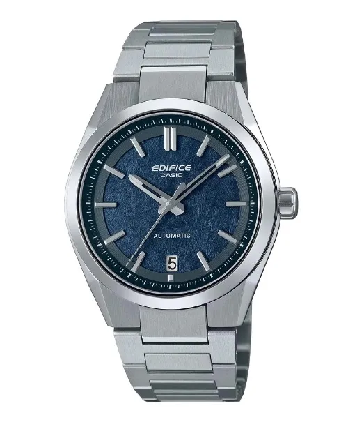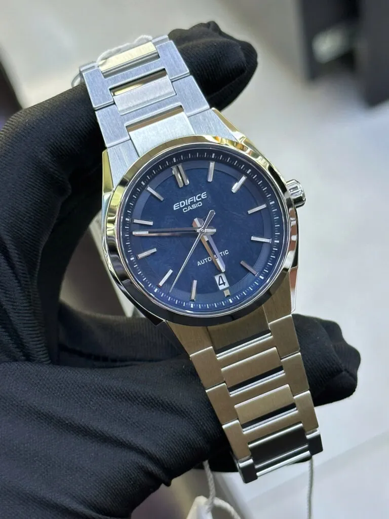 Điểm khiến Đồng Hồ Casio Nam EFK-100D-2ADR thực sự tỏa sáng chính là mặt số màu xanh dương sâu thẳm. Không chỉ là một lớp màu đơn điệu, Casio đã khéo léo sử dụng kỹ thuật tạo vân Guilloché với các họa tiết lượn sóng tinh xảo. Dưới các góc độ ánh sáng khác nhau, mặt số sẽ tạo ra hiệu ứng chuyển màu từ xanh đậm sang xanh navy, tạo nên một chiều sâu thị giác cực kỳ cuốn hút.