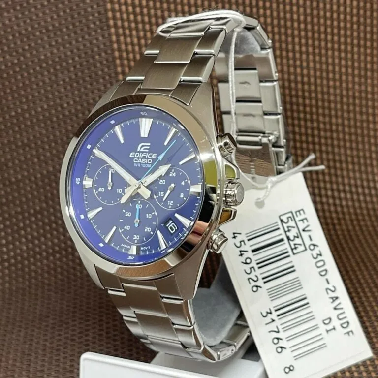Trong phân khúc đồng hồ thể thao tầm trung, dòng Edifice của Casio luôn chiếm giữ một vị trí đặc biệt nhờ sự kết hợp tinh tế giữa công nghệ hiện đại và thiết kế sang trọng. Một trong những đại diện tiêu biểu nhất chính là mẫu Đồng Hồ Casio Nam EFV-630D-2AVUDF. Với sắc xanh Navy sâu thẳm phối cùng dây thép bạc sáng bóng, cỗ máy này không chỉ là công cụ xem giờ mà còn là một tuyên ngôn về phong cách của người đàn ông thành đạt.