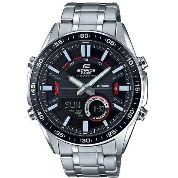 Điểm nhấn đắt giá giúp chiếc đồng hồ này trở nên khác biệt chính là những chi tiết viền đỏ rực rỡ tại các vị trí chức năng. Sự phối hợp giữa tông màu Bạc - Đen - Đỏ mang lại cảm giác năng động, giống như bảng điều khiển của một chiếc xe đua công thức 1. Thiết kế kim số (Ana-Digi) mang đến sự đa năng tuyệt vời, cho phép bạn vừa tận hưởng vẻ đẹp của kim quay truyền thống, vừa sử dụng các tính năng hiện đại trên màn hình điện tử.