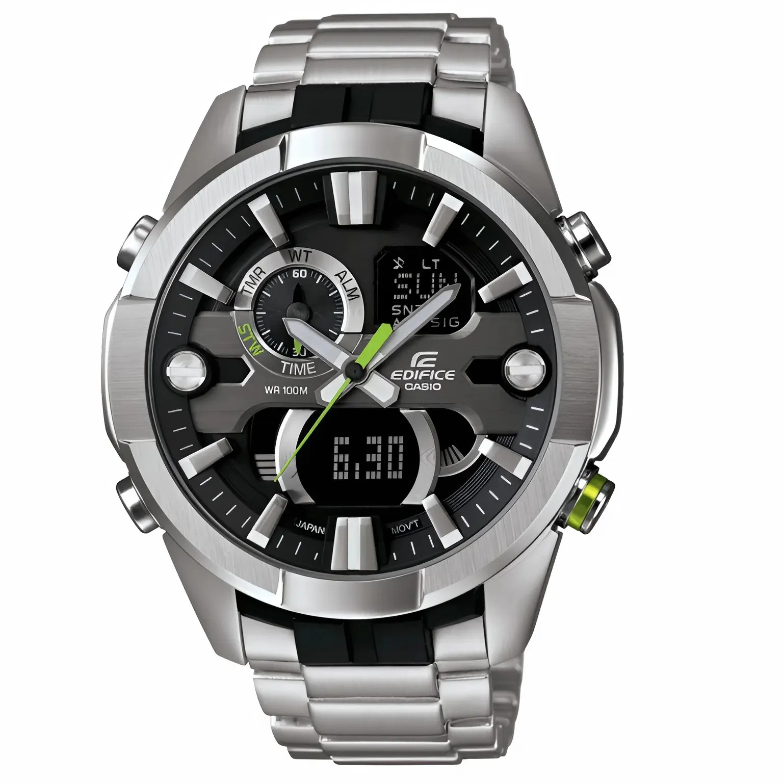 Điểm nhấn thu hút nhất ngay từ cái nhìn đầu tiên của Đồng Hồ Casio Nam ERA-201D-1AVDF chính là thiết kế mặt số 3D đa lớp (Multi-layer dial). Thay vì một mặt phẳng đơn điệu, Casio đã khéo léo xếp chồng các chi tiết kim loại và màn hình kỹ thuật số, tạo nên chiều sâu hút mắt tựa như bảng điều khiển của những chiếc xe đua siêu cấp.