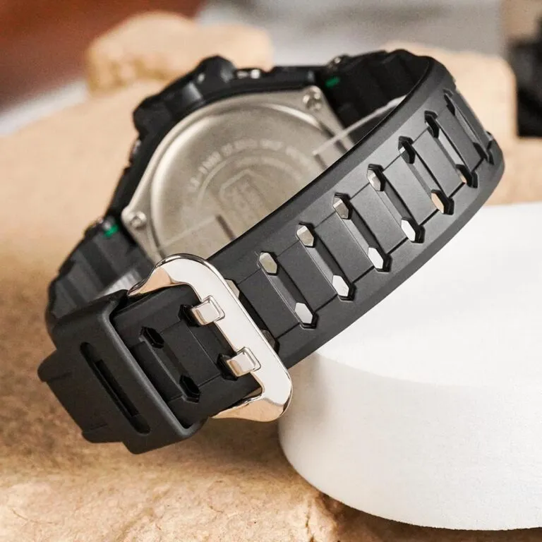 Bên cạnh đó, khả năng kháng nước lên đến 200 mét cho phép bạn thoải mái sử dụng trong mọi hoạt động dưới nước như bơi lội, đi mưa hay lặn biển. Dây đeo bằng nhựa bền bỉ, dẻo dai đảm bảo sự thoải mái dù bạn có đeo đồng hồ suốt cả ngày dài.
