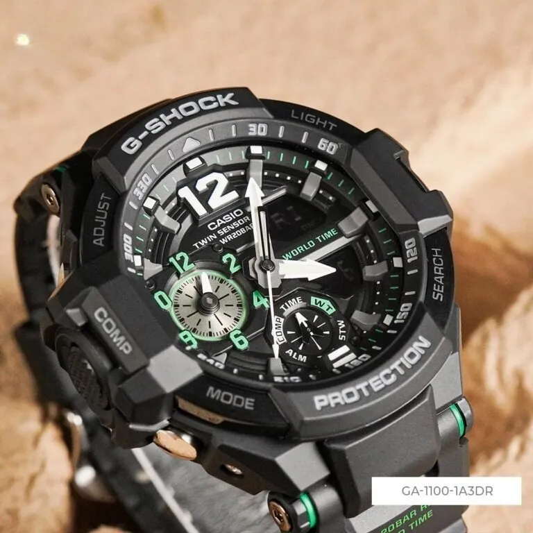 Đồng Hồ Casio Nam GA-1100-1A3DR không chỉ là một công cụ đếm giờ, nó là biểu tượng cho sự chính xác, bền bỉ và tinh thần sẵn sàng chinh phục của phái mạnh. Với phối màu đen xanh lá độc đáo cùng bộ đôi cảm biến Twin Sensor, đây chắc chắn là người bạn đồng hành không thể thiếu trên mọi cung đường và mọi tầng độ cao.