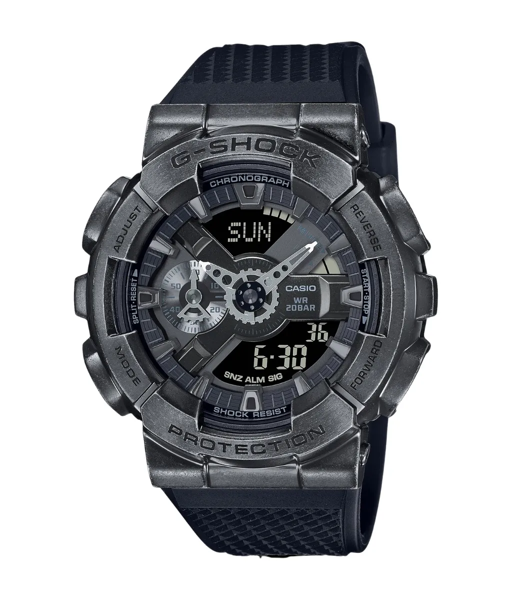 Mặt số của Đồng Hồ Casio Nam GM-110VB-1ADR là một sự sắp đặt kỳ công của các chi tiết 3D đa lớp. Lấy cảm hứng từ những bộ máy cơ khí và linh kiện công nghiệp, các chi tiết trên mặt số được hoàn thiện với tông màu xám và bạc đồng nhất với bộ vỏ.