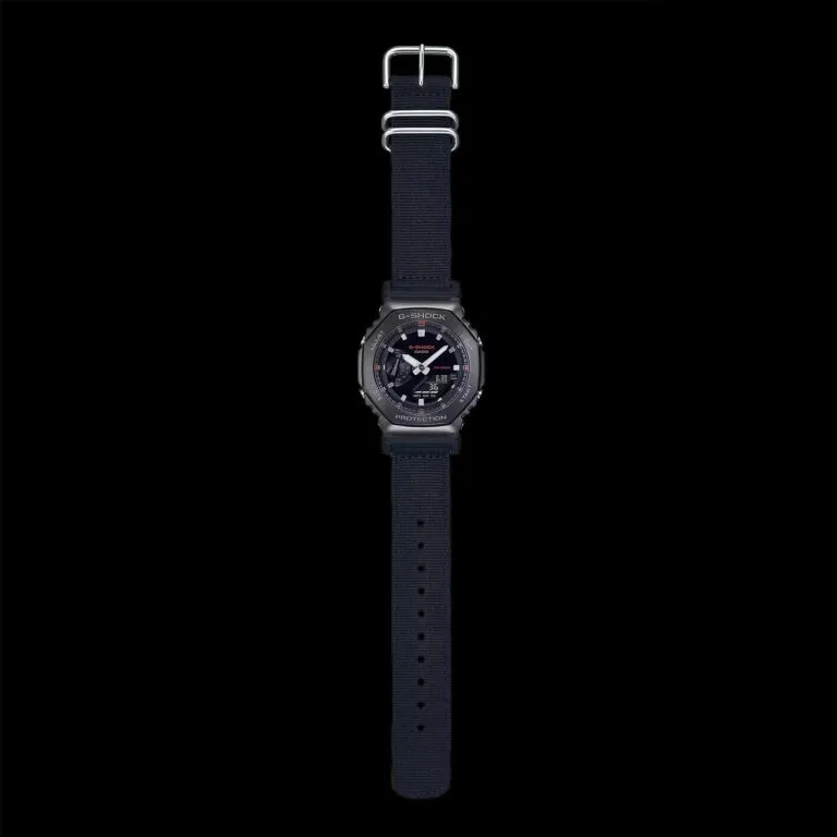 Điểm tạo nên sức hút khó cưỡng cho Đồng hồ Casio Nam GM-2100CB-1ADR chính là bộ dây đeo bằng vải dệt cao cấp màu đen. Thay vì sử dụng dây nhựa hay dây kim loại, dây vải mang đến một trải nghiệm đeo hoàn toàn khác biệt: nhẹ tênh, ôm sát cổ tay và đặc biệt là cực kỳ thoáng khí, không gây cảm giác bí bách ngay cả trong thời tiết nóng ẩm.