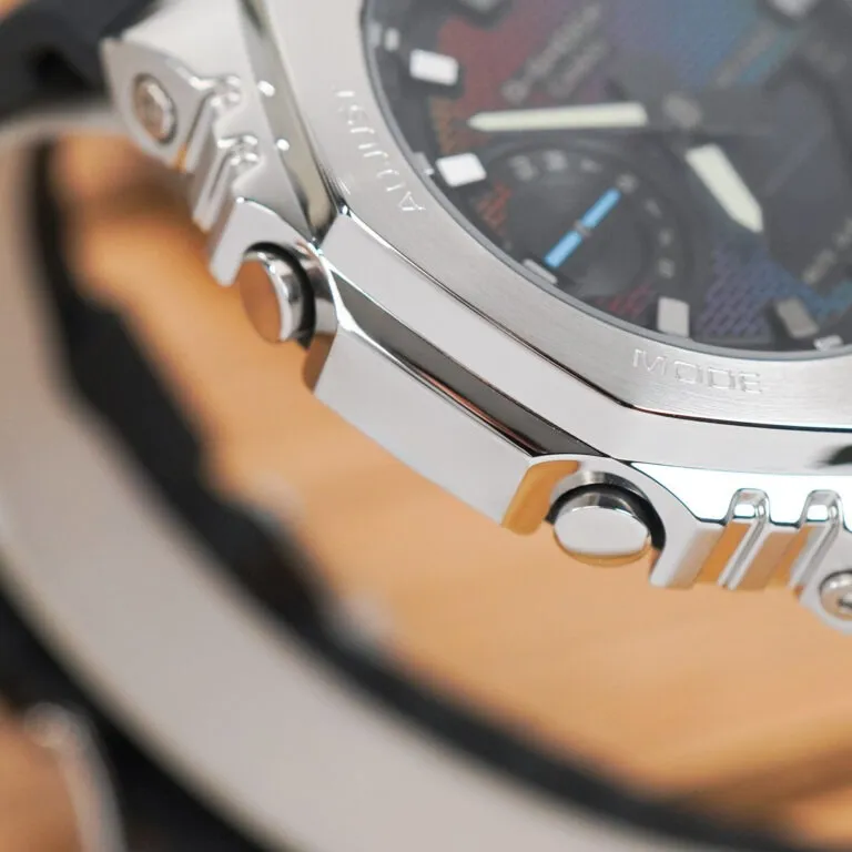 Sự tỉ mỉ trong hoàn thiện kim loại tạo nên vẻ ngoài sáng lạnh, cứng cáp, đối lập hoàn hảo với sự mềm mại của dải màu cầu vồng bên trong. Đây là mẫu đồng hồ "Metal-Covered" có độ hoàn thiện tốt nhất trong phân khúc, mang lại cảm giác đầm tay và sang trọng vượt trội.