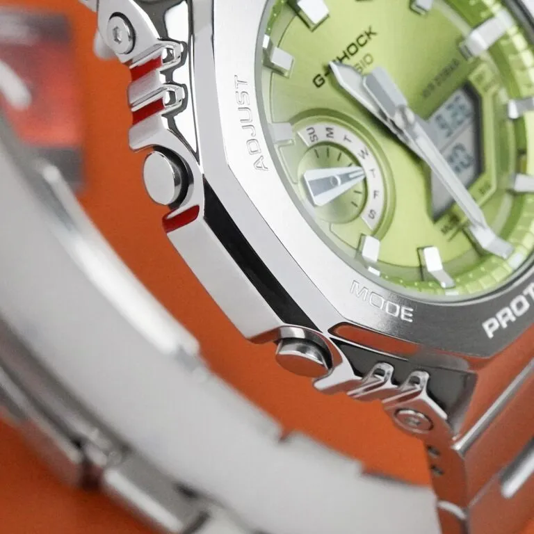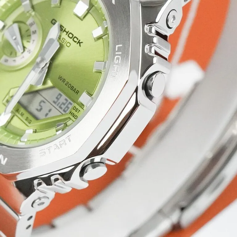 Điểm khiến Đồng Hồ Casio Nam GM-2110D-3ADR trở nên độc bản chính là sắc xanh Lime (Xanh lá nhạt) trên mặt số. Giữa một rừng những mẫu đồng hồ mặt đen, xanh dương hay trắng đã quá quen thuộc, sắc xanh này mang lại sự tươi mới, năng động và đầy sức sống.