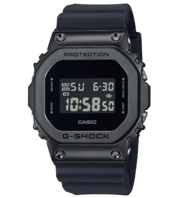 Điểm nhấn khác biệt nhất của Đồng Hồ Casio Nam GM-5600UB-1DR so với những người tiền nhiệm chính là phần khung viền (bezel) được chế tác từ thép không gỉ 316L. Thay vì giữ màu bạc nguyên bản, Casio đã phủ một lớp mạ ion đen mờ (Matte Black) cực kỳ tinh xảo.