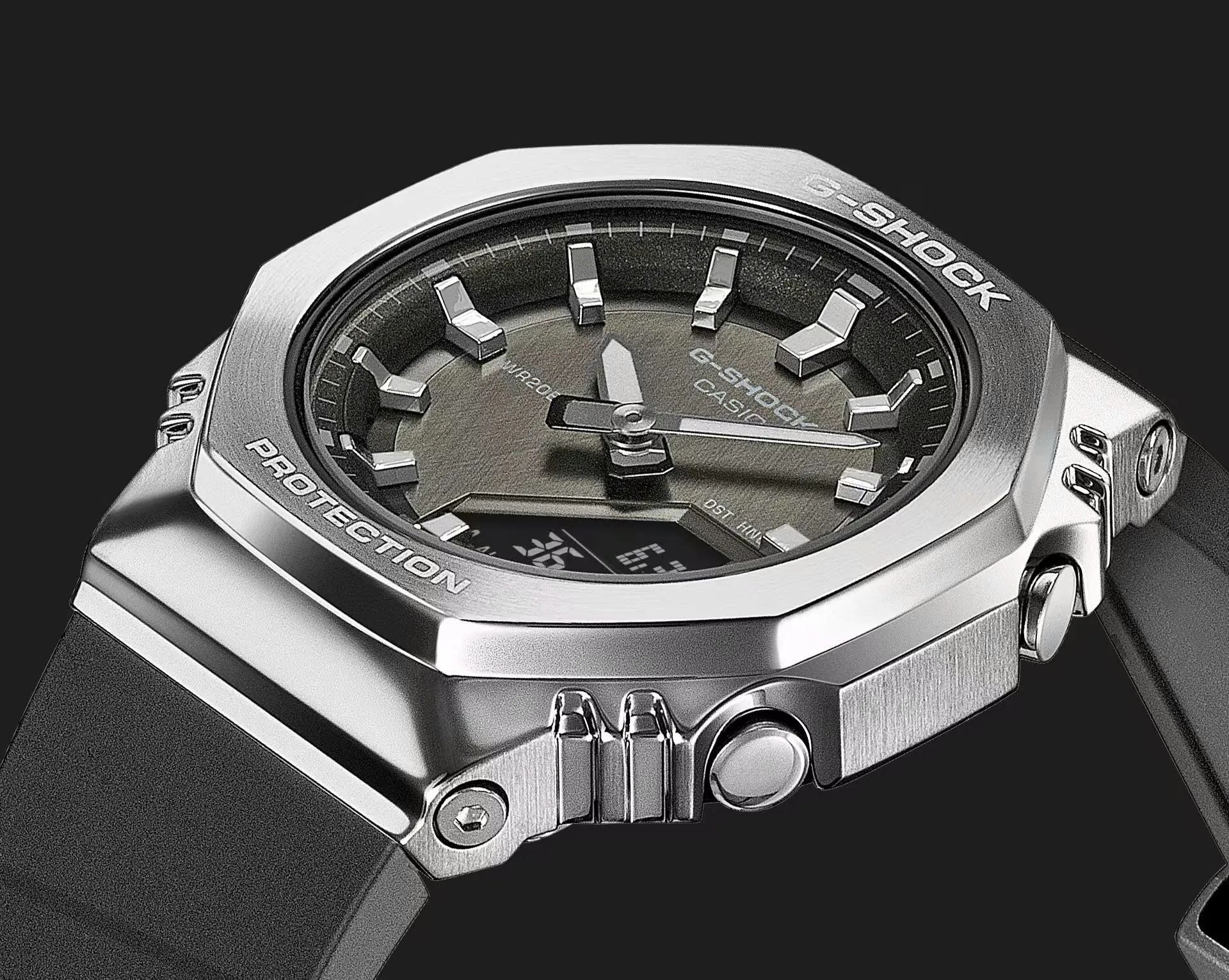 Mặt số của Đồng Hồ Casio Nam GM-S2110-1A1DR là sự kết hợp tinh tế giữa kim quay truyền thống và màn hình LCD điện tử nhỏ gọn. Các cọc số được thiết kế dạng khối nổi, tạo chiều sâu cho mặt đồng hồ mỗi khi bạn quan sát giờ giấc.