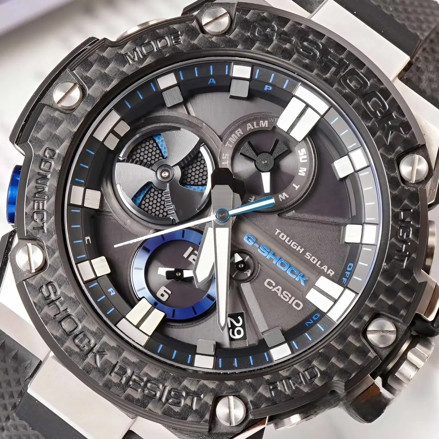 Trong thế giới đồng hồ thể thao cao cấp, dòng G-STEEL luôn chiếm giữ một vị thế đặc biệt nhờ sự kết hợp hoàn hảo giữa độ bền bỉ huyền thoại và vẻ ngoài sang trọng. Riêng với mẫu Đồng Hồ Casio Nam GST-B100XA-1ADR, Casio đã thực sự tạo nên một cuộc cách mạng về vật liệu khi đưa sợi Carbon Torayca® – loại vật liệu siêu hạng trong ngành hàng không vũ trụ – vào thiết kế của mình.