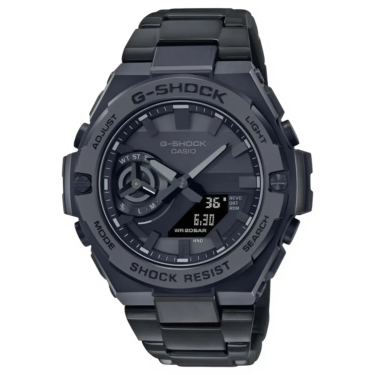 Thiết kế này giúp đồng hồ dễ dàng nằm gọn dưới lớp tay áo sơ mi hay áo khoác, khắc phục nhược điểm "quá khổ" của các dòng G-Shock truyền thống. Đối với những người có cổ tay trung bình, GST-B500BD-1ADR mang lại cảm giác đeo cân đối, nhẹ nhàng nhưng vẫn cực kỳ đầm tay nhờ chất liệu thép.