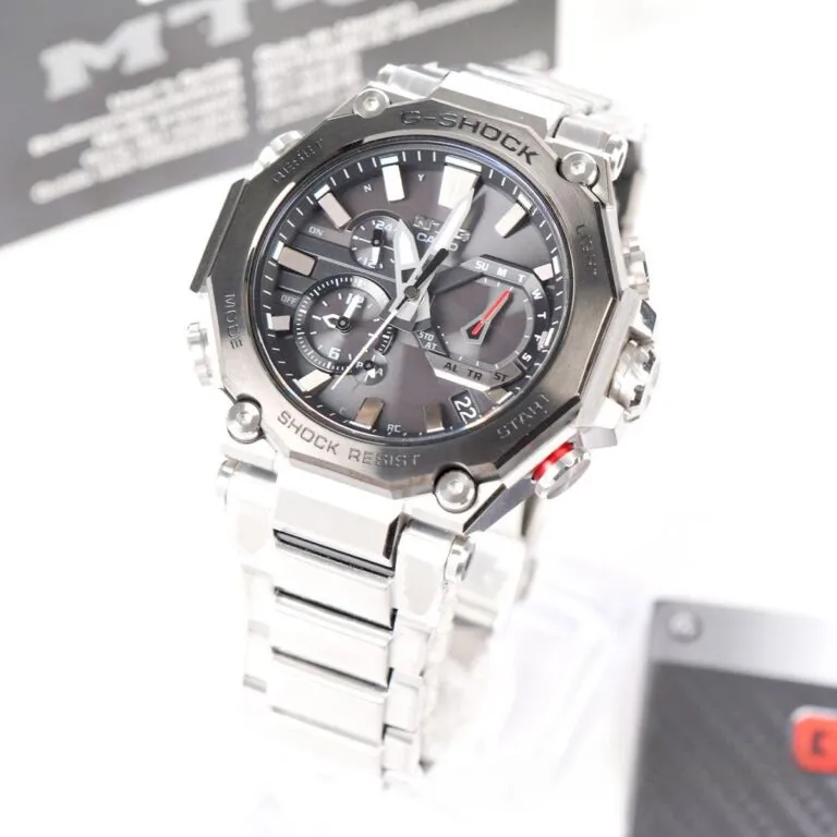 Về mặt thẩm mỹ, Đồng Hồ Casio Nam MTG-B2000D-1ADR sở hữu vành bezel bát giác lấy cảm hứng từ dòng 2100 nhưng được chế tác ở một đẳng cấp hoàn toàn khác. Bề mặt kim loại được xử lý bằng kỹ thuật đánh bóng Sallaz – phương pháp thường chỉ xuất hiện trên các dòng đồng hồ xa xỉ của Nhật Bản, tạo nên độ sáng bóng như gương và các đường nét phay xước hairline cực kỳ tinh tế.