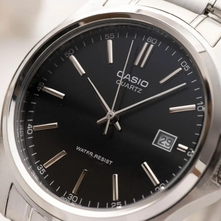 Thay vì sử dụng các chữ số Latinh hay La Mã cầu kỳ, Casio chọn các vạch định giờ thanh mảnh, tạo nên cảm giác gọn gàng và hiện đại. Tại góc 3 giờ, một ô lịch ngày nhỏ nhắn được bố trí tinh tế, hỗ trợ người dùng quản lý thời gian biểu một cách khoa học nhất.