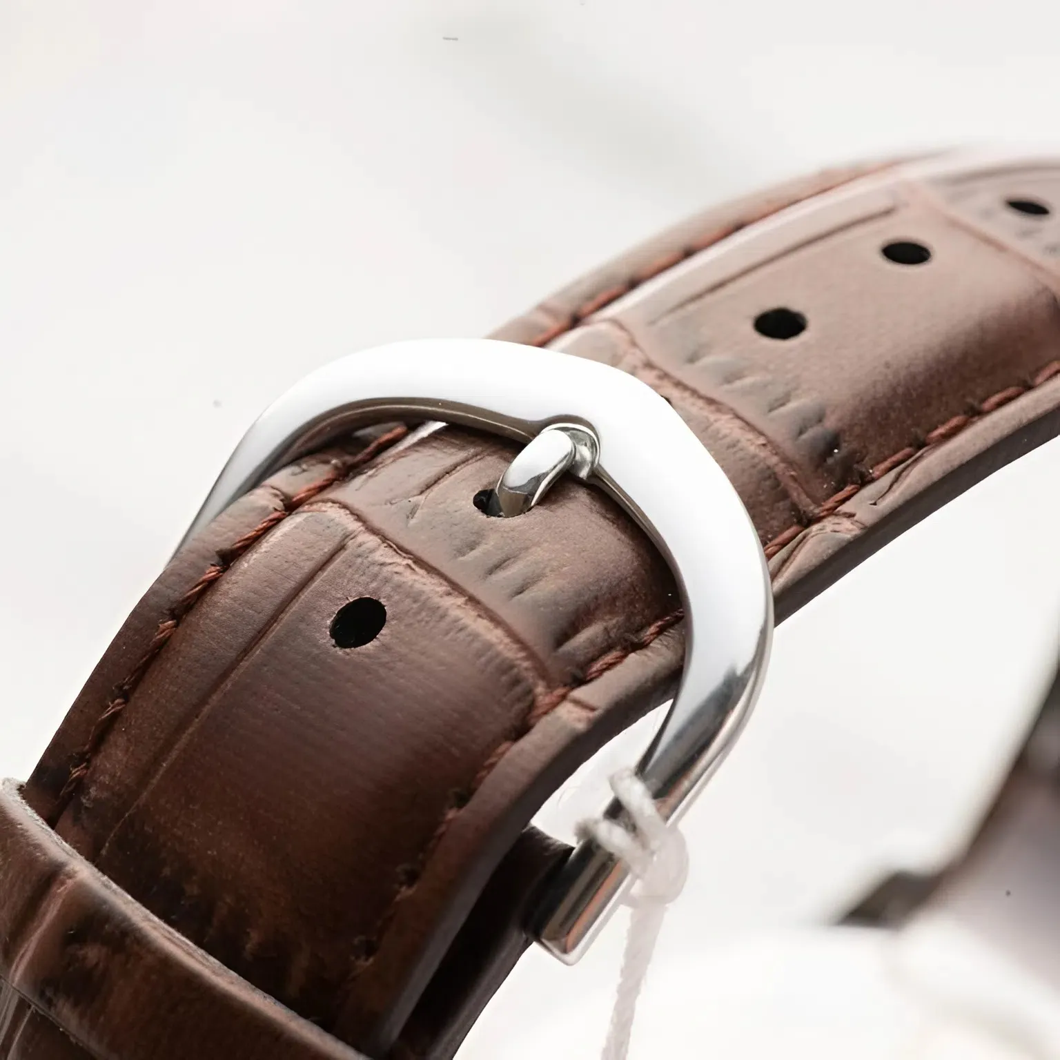 Chất liệu da được tuyển chọn kỹ lưỡng để đảm bảo độ mềm mại ngay từ lần đeo đầu tiên, không gây cảm giác cứng hay cấn cổ tay. Màu nâu của dây khi kết hợp với vỏ thép bạc sáng bóng tạo nên một tổng thể hài hòa, giúp người đeo dễ dàng phối hợp với những bộ suit lịch lãm, áo sơ mi công sở hay thậm chí là những chiếc áo polo năng động cho ngày cuối tuần.