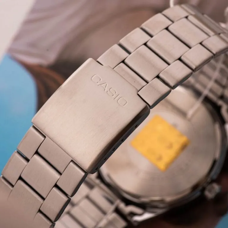 Một trong những lý do khiến Đồng Hồ Casio Nam MTP-VD02D-1EUDF được ưa chuộng là nhờ bộ vỏ và dây đeo làm từ thép không gỉ cao cấp. Khác với các loại dây da có thể bị bong tróc hay gây mùi sau một thời gian sử dụng, dây kim loại mang lại cảm giác đầm tay, chắc chắn và cực kỳ thoáng mát.