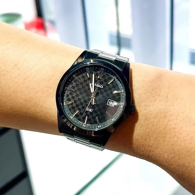 Trong thế giới phụ kiện nam giới, màu đen luôn là biểu tượng của sự quyền lực, bí ẩn và không bao giờ lỗi mốt. Nếu bạn đang tìm kiếm một cỗ máy thời gian vừa mang nét cổ điển, vừa toát lên hơi thở hiện đại, phá cách thì Đồng Hồ Casio Nam MTP-VD03B-1AUDF chính là câu trả lời hoàn hảo nhất. Đây là một trong những mẫu thiết kế ấn tượng nhất thuộc dòng MTP, nơi Casio phô diễn khả năng phối trộn chất liệu và họa tiết đỉnh cao.