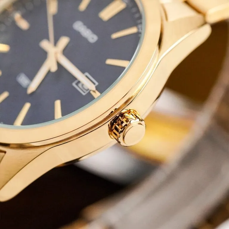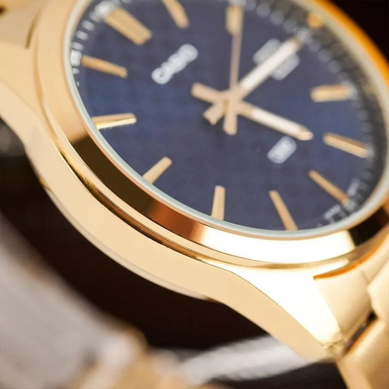 Sức hút của Đồng Hồ Casio Nam MTP-VD03G-2AUDF còn nằm ở lớp vỏ và dây đeo được mạ Ion vàng (Gold IP) cao cấp. Đây là công nghệ mạ tiên tiến giúp màu sắc đạt được độ chân thực tối đa, đồng thời tăng khả năng bền màu và chống trầy xước trong quá trình sử dụng.