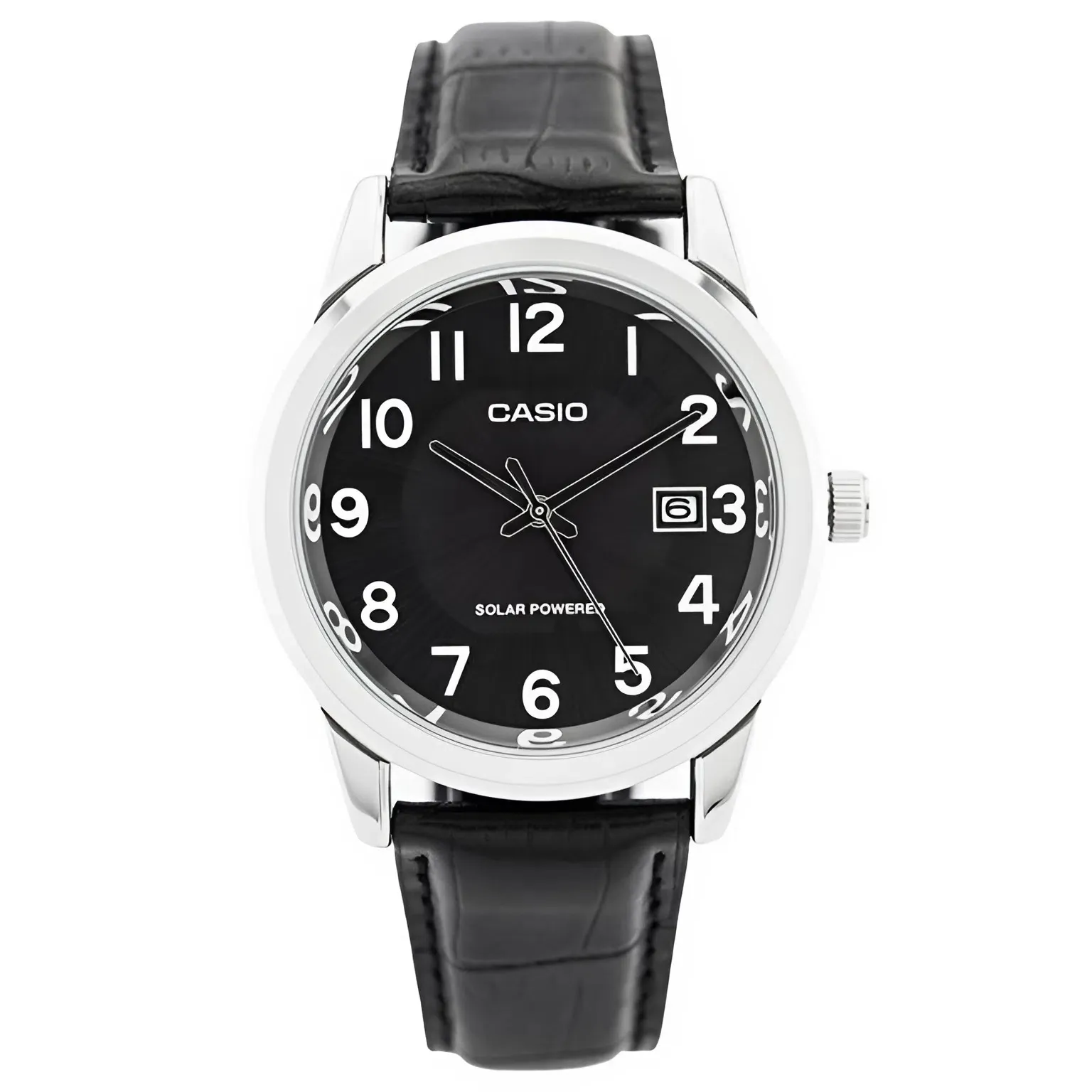 Dù sở hữu công nghệ hiện đại, nhưng ngoại hình của Đồng Hồ Casio Nam MTP-VS01L-1B1DF lại mang đậm nét cổ điển thuần túy. Mặt số màu đen tuyền (Deep Black) tạo nên một phong thái điềm đạm và đầy bí ẩn. Sự tương phản mạnh mẽ giữa nền đen và bộ chữ số Arab trắng to bản giúp người dùng quan sát thời gian cực kỳ dễ dàng.