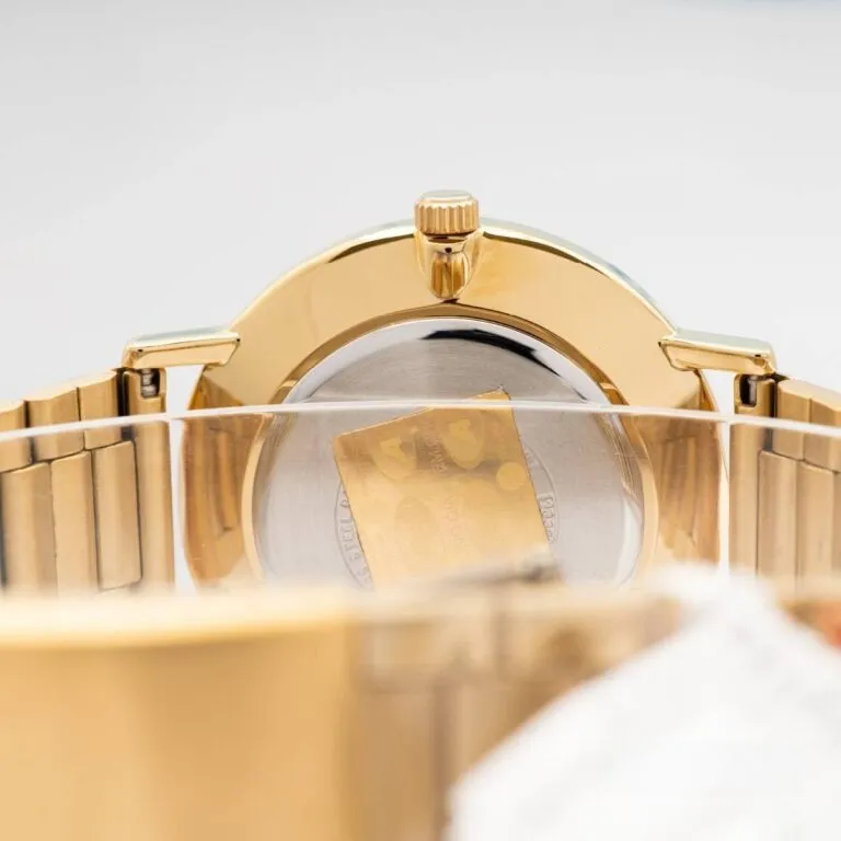 Dây đeo thép không gỉ: Lớp mạ vàng được thực hiện bằng công nghệ tiên tiến, hạn chế tối đa việc phai màu hay bong tróc theo thời gian.