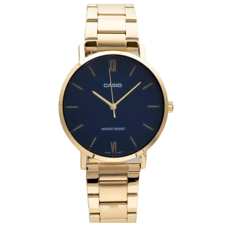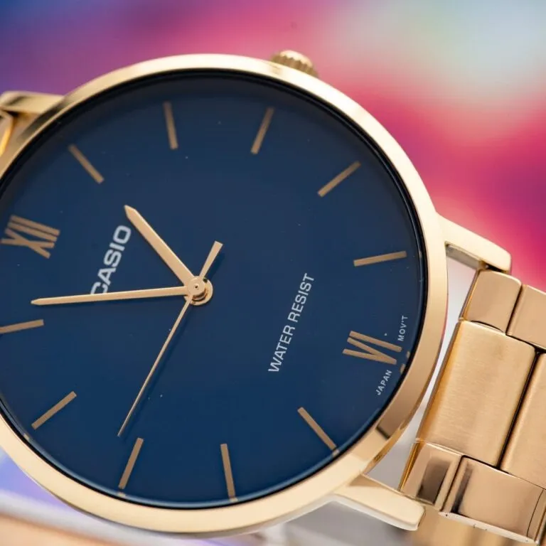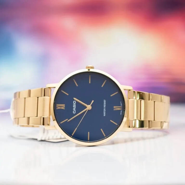 Trong thế giới của những quý ông thành đạt, chiếc đồng hồ không chỉ đơn giản là công cụ đo đếm thời gian, mà còn là bản tuyên ngôn về phong cách và địa vị. Đồng Hồ Casio Nam MTP-VT01G-2BUDF xuất hiện như một "kiệt tác" trong phân khúc phổ thông, mang đến một diện mạo sang trọng không thua kém gì những dòng sản phẩm cao cấp đắt tiền. Sự phối hợp giữa tông vàng vương giả và sắc xanh Navy huyền bí đã tạo nên một sức hút khó cưỡng ngay từ cái nhìn đầu tiên.