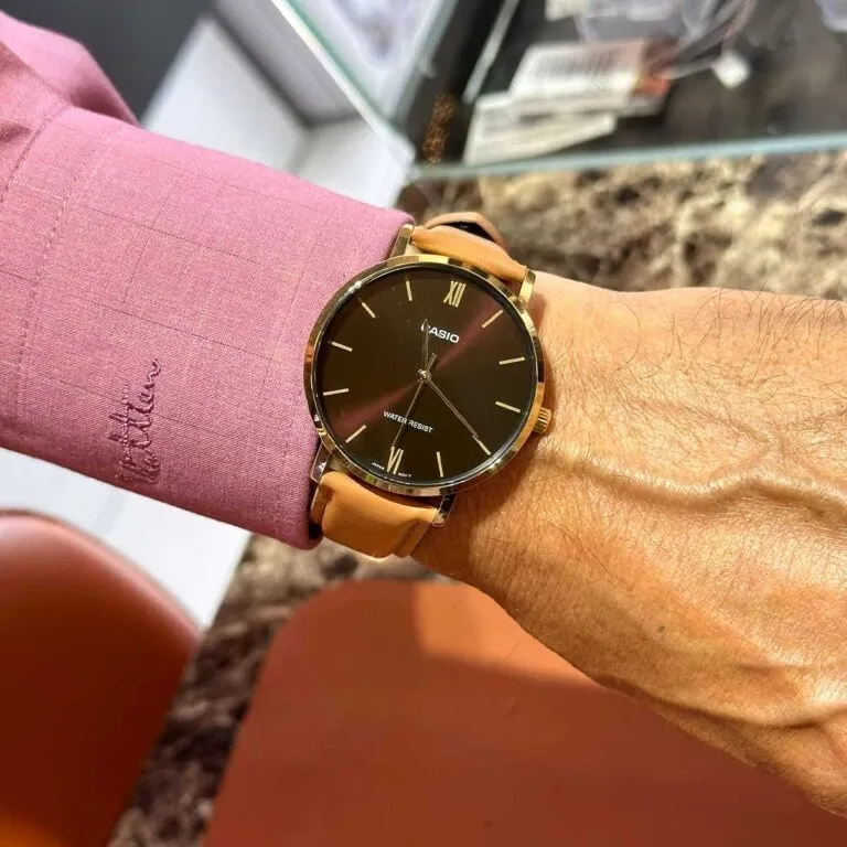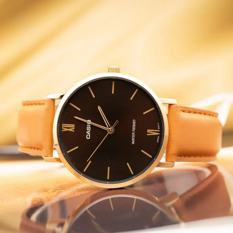 Điểm khiến Đồng Hồ Casio Nam MTP-VT01GL-5BUDF thu hút mọi ánh nhìn chính là tông màu nâu chủ đạo. Không phải là màu đen truyền thống hay màu xanh hiện đại, sắc nâu cà phê đậm trên mặt số mang lại một cảm giác ấm áp, chiều sâu và vô cùng nam tính.