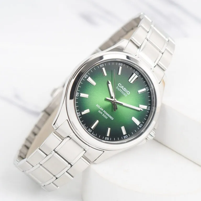 Trong thế giới đồng hồ nam, màu xanh lá (Green Dial) đang trở thành một biểu tượng mới của sự thịnh vượng, trẻ trung và phong cách khác biệt. Chiếc Đồng Hồ Casio Nam MTS-RS100D-3AVDF không chỉ nắm bắt trọn vẹn xu hướng màu sắc này mà còn tích hợp những tính năng cao cấp vốn chỉ xuất hiện trên các dòng sản phẩm đắt tiền. Đây chính là "siêu phẩm" hội tụ đủ ba yếu tố: Thẩm mỹ thời thượng, độ bền tuyệt đối và công nghệ năng lượng tương lai.